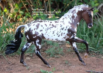 *Likely to produce peacock patterened foals, her sire, grandsire, and great-grandsire were all peacock patterened and her sire has produced other real peacock patterend foals
